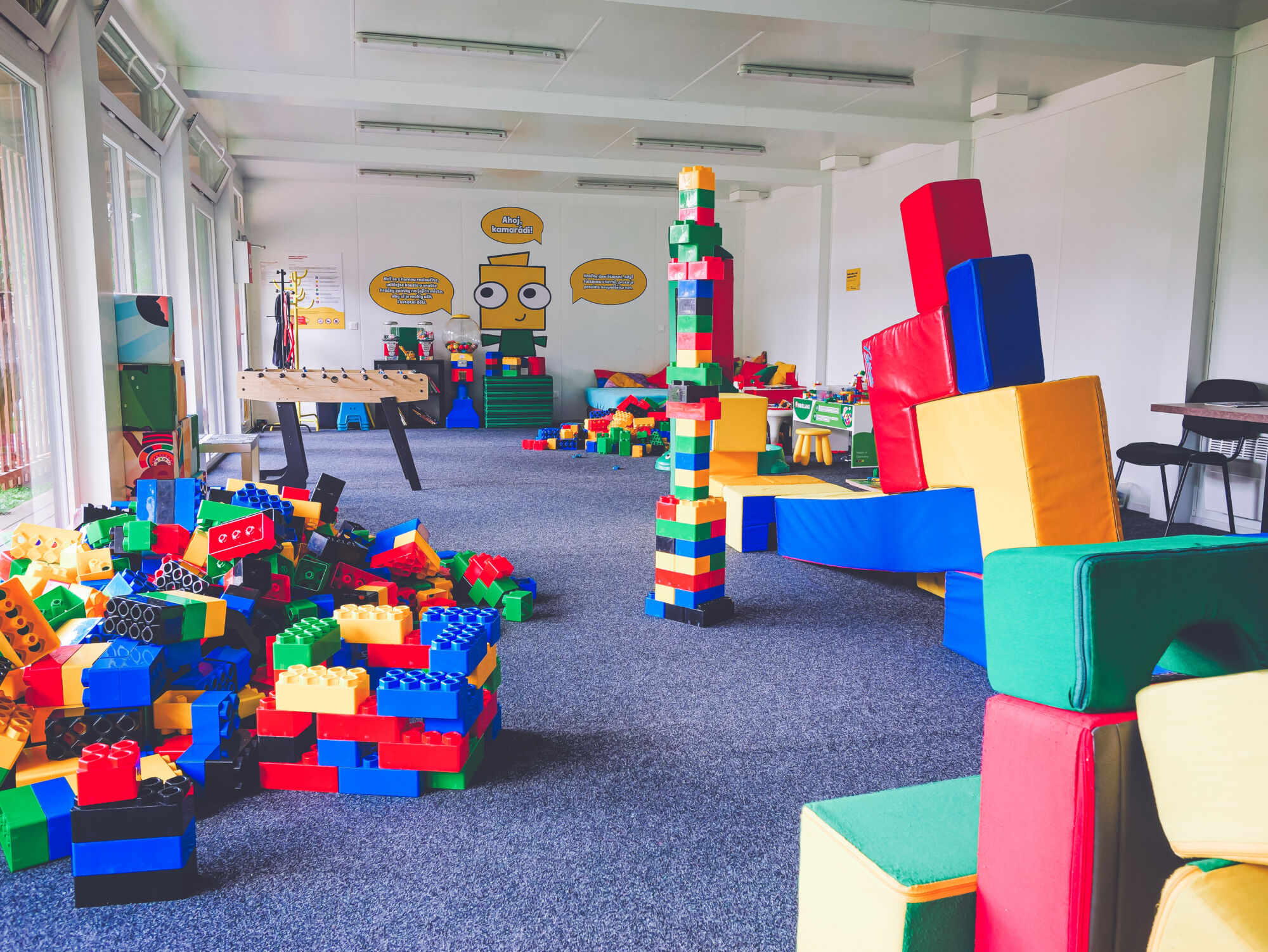 Prostorná vnitřní herna plná LEGO® kostek a herních prvků. Ideální místo pro kreativní hraní během celého dne.