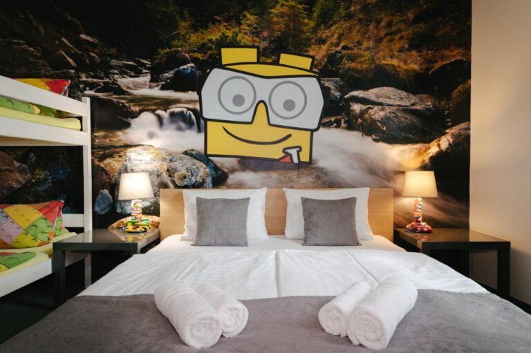 LEGO® není jen hračka, ale součást celého hotelu. Děti i dospělí se setkávají s kostkami na každém kroku – na pokojích, v hernách i společných prostorách.